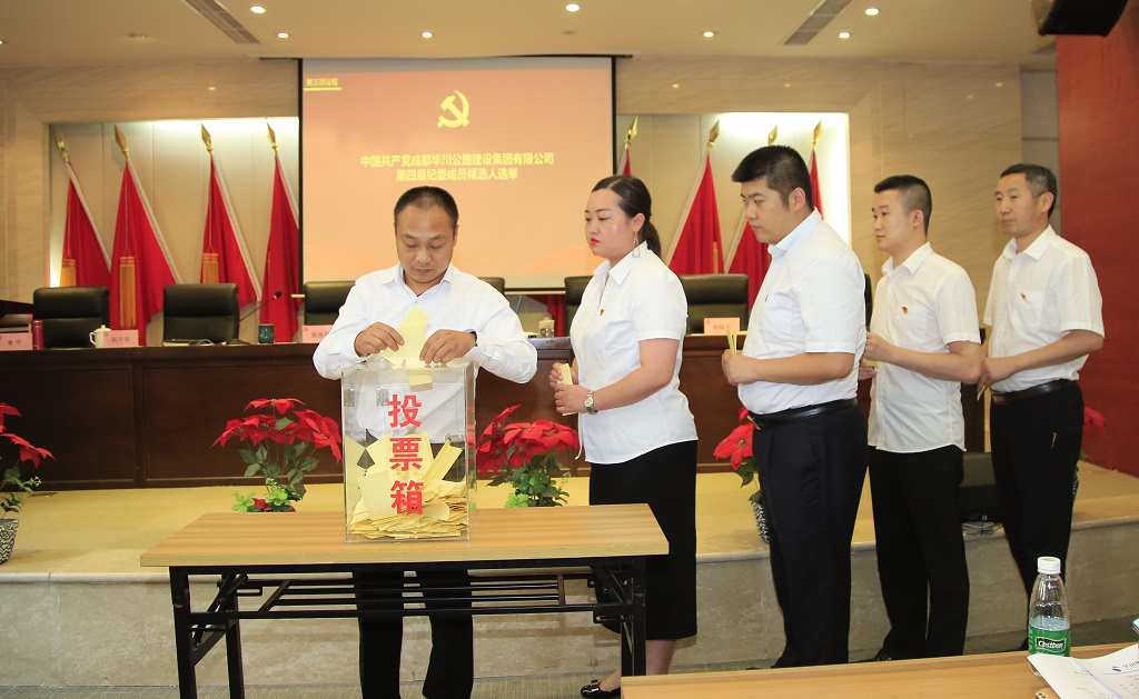 黨委委員駱小紅同志宣讀了《中共成都市交通運輸局黨組關(guān)于同意中共成都華川公路建設(shè)集團有限公司換屆選舉的批復(fù)》,黨委委員楊開榮同志宣讀了《中共成都華川公路建設(shè)集團有限公司第四次黨員大會選舉辦法(草案)》。