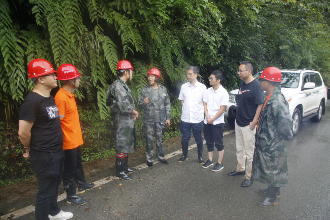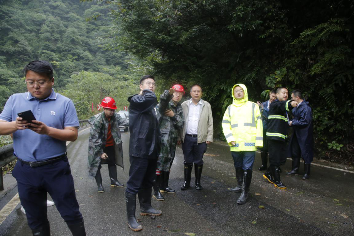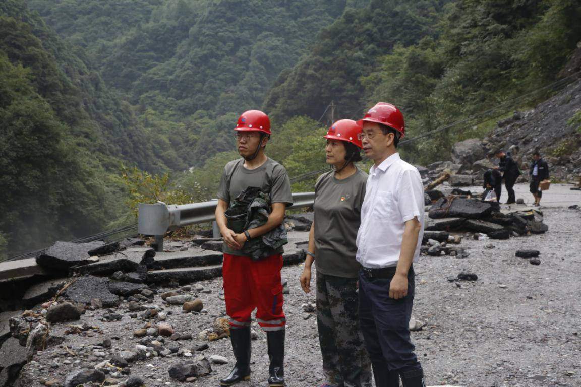 21日大邑縣縣委書記李燎等領導現(xiàn)場查看道路損毀情況