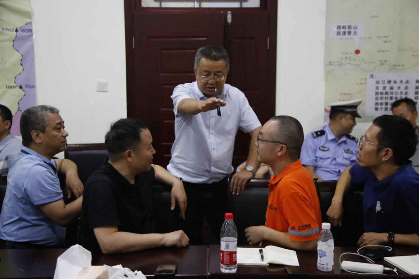 大邑縣交通局副局長陳建偉與集團應急搶險隊討論搶險方案