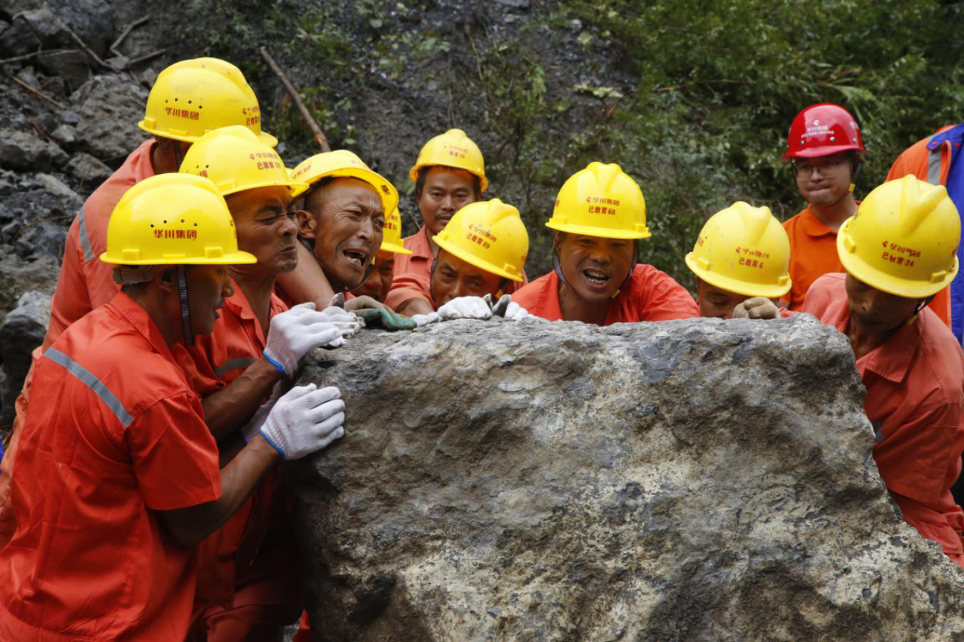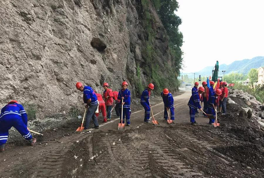 22日,集團搶險隊伍對5號山體滑坡路段進行疏通,由于后方路段損毀嚴重,重型機械無法抵達,搶險隊員們冒著不斷滾落的滑坡碎石,采用人工清理的方式,用雙手與一塊塊巨大的滑坡石體相抗,最終及時疏通出一條可供人員通行的生命通道,滯留游客和群眾于22日下午開始陸續(xù)撤離。