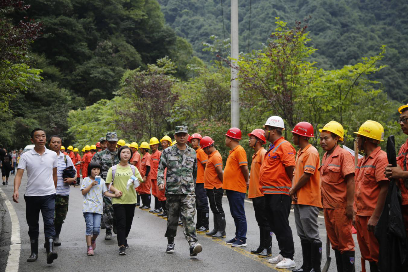 華川集團搶險隊伍護送第一批游客群眾撤離