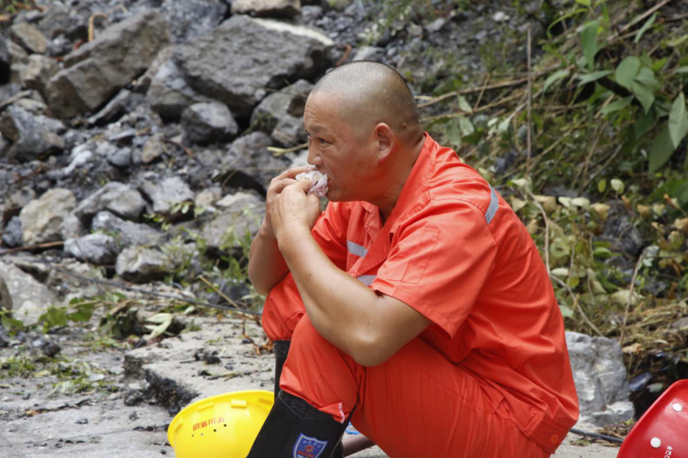 搶險任務緊張,搶險隊員無暇吃上一口飽飯