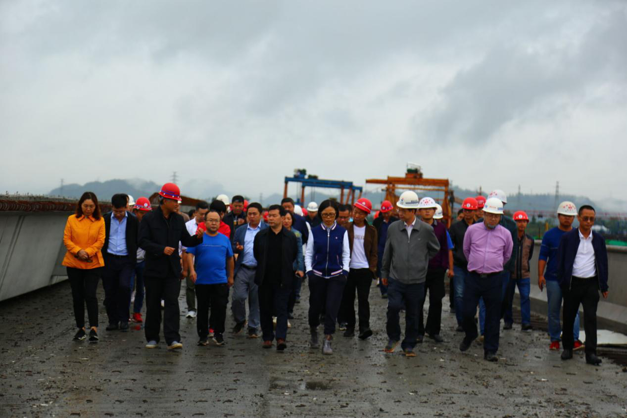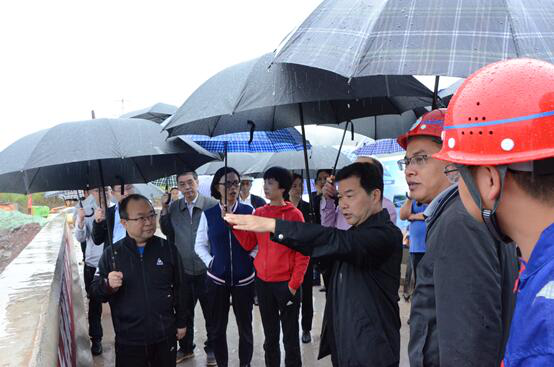 9月17日,集團(tuán)黨委書記、董事長、總裁謝應(yīng)文、常務(wù)副總裁駱曉紅等領(lǐng)導(dǎo)率集團(tuán)各職能部門負(fù)責(zé)人,在營達(dá)項(xiàng)目向年底通車目標(biāo)發(fā)起總攻、決戰(zhàn)決勝的關(guān)鍵時刻,冒雨深入營達(dá)高速項(xiàng)目施工一線現(xiàn)場督導(dǎo)慰問。營達(dá)公司總經(jīng)理謝應(yīng)武及參建單位負(fù)責(zé)人等陪同。
