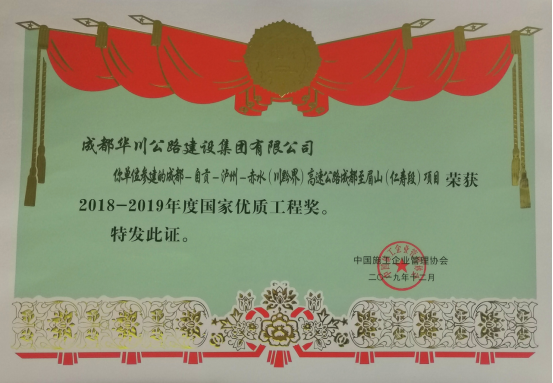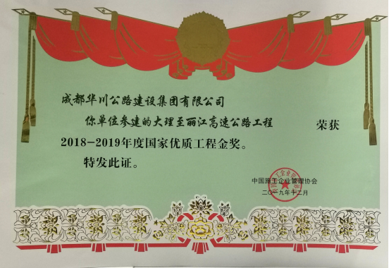 集團(tuán)在2018年組織申報(bào)的“大理-麗江高速公路”、“成都-自貢-瀘州-赤水高速成仁段”項(xiàng)目于今年12月分別榮獲“國家優(yōu)質(zhì)工程金獎(jiǎng)”、“國家優(yōu)質(zhì)工程獎(jiǎng)”兩項(xiàng)殊榮,實(shí)現(xiàn)了集團(tuán)參建工程在國家優(yōu)質(zhì)工程(金)獎(jiǎng)上的突破。此次獎(jiǎng)項(xiàng)由集團(tuán)總工辦全力申報(bào)。