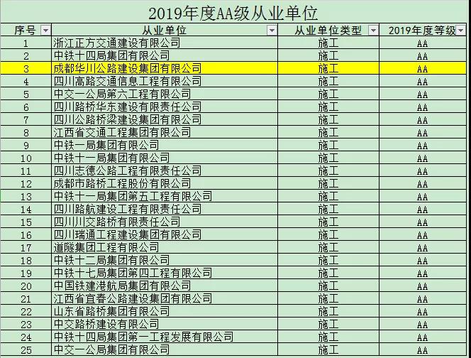集團(tuán)榮獲四川省重點(diǎn)公路建設(shè)從業(yè)單位2019年年度信用評價(jià) “AA”等級