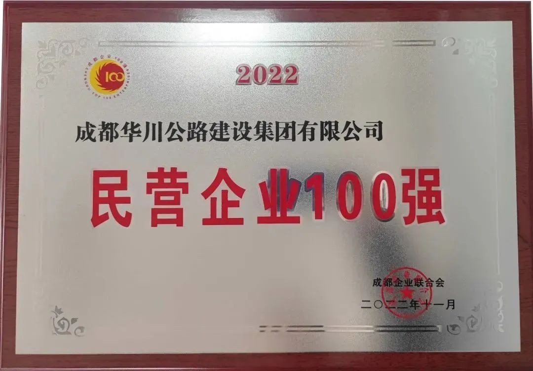 華川集團榮獲2022年度“成都市民營企業(yè)100強”
