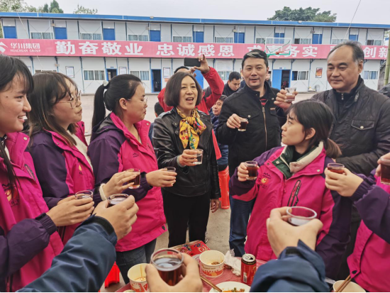 (集團(tuán)黨委副書記施繼梅與大家共飲慶功酒)