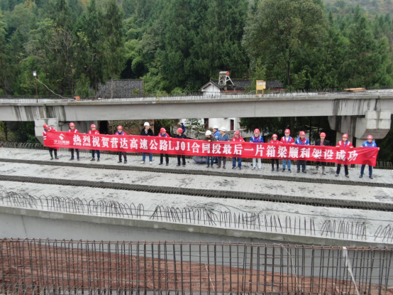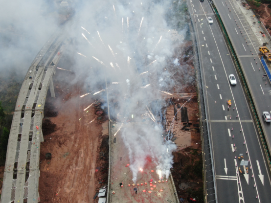 11月24日10時(shí)18分,隨著新店樞紐互通G匝道橋最后一片小箱梁被吊裝設(shè)備穩(wěn)穩(wěn)安放在最后一跨墩柱上,現(xiàn)場慶祝的煙花頓時(shí)直沖云霄,鞭炮聲、歡呼聲、吶喊聲響成一片。對(duì)于參與新店樞紐互通施工的每一個(gè)參建者來說,這是一個(gè)激動(dòng)人心的時(shí)刻。新店樞紐互通最后一片箱梁順利架設(shè)成功,標(biāo)志著整個(gè)新店樞紐互通主體結(jié)構(gòu)施工全面完工,提前6天完成了營達(dá)公司下達(dá)的目標(biāo)任務(wù)。